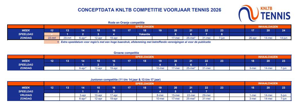 De voorjaarscompetitie bestaat uit de volgende speeldagen (noteer deze alvast in de agenda):