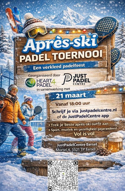 Eindelijk weer een après-ski padeltoernooi in Eersel. Schrijf snel in, regel een oppas en een BOB 😜.